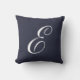 Personalised monogram pillow with a classic script letter E on a Navy Blue background. Made in the USA from machine washable cotton or polyester. Perfect for Elizabeth, Emily, Emma, Erica, Erika, Erin, Eva, Ellen, Esther, Elena, Evelyn or anyone else who's name begins with the letter E.