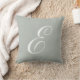Personalised monogram pillow with a classic script letter E on a Silver Grey background. Made in the USA from machine washable cotton or polyester. Perfect for Elizabeth, Emily, Emma, Erica, Erika, Erin, Eva, Ellen, Esther, Elena, Evelyn or anyone else who's name begins with the letter E.