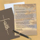 This uplifting flat greeting card features a comforting “Letter from God” on the front, set against a serene sky filled with soft clouds and gentle sunlight. It feels peaceful and reassuring, making it a beautiful way to remind someone that they are held, guided, and never alone. The message encourages trust, rest, and prayer—perfect for moments when someone needs spiritual encouragement or a reminder of God’s steady presence. The reverse side continues the faith‑centered theme with a brown background showcasing the word faith arranged vertically, the elegant “f” forming a simple cross. It adds a modern, meaningful touch that complements the heartfelt message on the front. This card is ideal for anyone who appreciates Christian encouragement—friends, family members, church members, or anyone walking through a difficult season. It works beautifully as a thinking‑of‑you note, a prayer card, a gentle reminder of hope, or a meaningful insert for care packages and ministry outreach. It's a thoughtful way to share comfort, faith, and love—one message at a time.