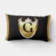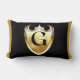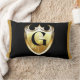 This lumbar pillow displays the capital Letter G inside of a golden coloured elegant decal with a unique font over the front and back panel with soft wrinkle-free knit fabric has a hidden zipper enclosure including synthetic-filled insert. All pillow are made from 100% polyester with high quality sublimation double-sided printing.