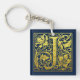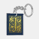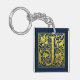 Letter J First Letter Faux Gold and Midnight Blue Key Ring