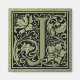 Charming decorative letter J initial monogram calligraphy style typography first letter in black over vintage avocado green book lining with off white Ginkgo biloba leaves.