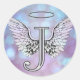 Letter J Initial Monogram Angel Wings & Halo Classic Round Sticker