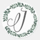 Letter J Monogram Minimalist Botanical Leaf Wreath Classic Round Sticker
