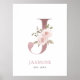 Letter J Monogram Watercolor Rose Florals Nursery Poster