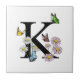 Letter K Floral Watercolor Butterfly Monogram Ceramic Tile