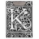 This initial K is part of a complete series of upper case William Morris inspired typography initials. The black and white lettering is highly decorative, styled after the fancy typography of the middle ages. Cute and trendy, this is a vintage chic monogram K - letter K- swirly K . Customise this vintage monogram by changing the background colour; just choose "edit design", and edit background colour. There is a complete alphabet of these letters. If you need a different letter, please visit the antiqueart store.