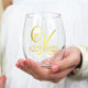 This monogram stemless wine glass makes a lovely wedding keepsake gift for your wedding party or bridesmaids. Stylish, minimalist design in trendy typography. The name template is set up ready for you to customise with recipient's name. Order this elegant keepsake for your big day now!