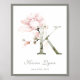 Letter K Monogram Pink White Floral Nursery Poster