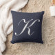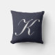 Personalised monogram pillow with a classic script letter K on a Navy Blue background. Made in the USA from machine washable cotton or polyester. Perfect for Kaitlin, Kaitlyn, Katelyn, Katherine, Kathryn, Katie, Kayla, Kelly, Kelsey, Kimberly, Kristen or anyone else who's name begins with the letter K.