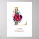 Letter L Monogram Floral Burgundy Red and Gold Poster