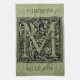 Charming decorative letter M initial monogram calligraphy style typography first letter in black over vintage sage green - avocado green book lining with off white Ginkgo biloba leaves.