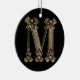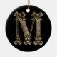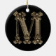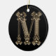 Photo of the letter "M" from a vintage initial pin. The image of the letter "M" is on both sides of the ornament.