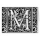 This initial M is part of a complete series of upper case William Morris inspired typography initials. The black and white lettering is highly decorative, styled after the fancy typography of the middle ages. Cute and trendy, this is a vintage chic monogram M - letter M- swirly M . Customise this vintage monogram by changing the background colour; just choose "edit design", and edit background colour. There is a complete alphabet of these letters. If you need a different letter, please visit the antiqueart store.