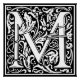 This initial M is part of a complete series of upper case William Morris inspired typography initials. The black and white lettering is highly decorative, styled after the fancy typography of the middle ages. Cute and trendy, this is a vintage chic monogram M - letter M- swirly M . Customise this vintage monogram by changing the background colour; just choose "edit design", and edit background colour. There is a complete alphabet of these letters. If you need a different letter, please visit the antiqueart store.