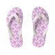 Cute personalised doodled flower and hearts art letter M patterned pink and purple flip flops. ©Art and design by Sarah Trett www.sarahtrett.com for www.mylittleeden.com on zazzle