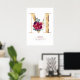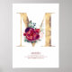 Letter M Monogram Floral Burgundy Red and Gold Poster