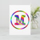 A colourful monogram with the letter M in rainbow colours inside of a rainbow circle. Share your pride of your name with a fun happy initial M.