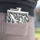 The flask itself is fine. It’s a cheap flask, obviously bought in bulk, however am prepared to overlook that. Given that it is a personalized item, I would have liked to have seen gift boxing instead of the generic packaging. Terrible printing, and/or quality. It’s a cheap, tacky vinyl. It is not cut straight and is also applied in a way that it is overhanging the bottom, causing the glue to catch on items and it will eventually roll and tear, damaging the wrap.