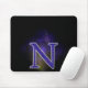 Muismat met de letter N. (bijvoorbeeld je initiaal) Leuk als je naam met de N begint of die van een ander. Achter de letter is een raster en mysterieuze wolken met een licht die erop schijnt. De letter N is gevuld met een plaid patroon en een grijze rand erom heen. kleuren blauw, paars, geel en zwart.