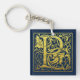 Letter P First Letter Faux Gold on Midnight Blue Key Ring