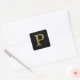 Gold capital letter P in faux gold bronze font. Metallic look achieved using highlights and shadows in yellow, brown and grey tones. Set on solid black and can be customised with the background colour of your choice.