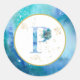* Initial  LETTER P monogram - Pastel Beach Watercolor INITIAL MONOGRAM Nautical Beach colours such as Aqua Turquoise and Blue with Gold line drawing of Sea Shell, Sea Turtle , and GOLD OUTLINE of a SEA HORSE , SEAHORSE  and more Beach Nautical touches decorate this Modern Trendy Gold Glitter , White and Ocean Beach Watercolor Letter Seal /  Envelope Seal Sticker.