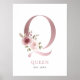 Pink floral nursery poster with letter Q monogram. Elegant and feminine letter Q monogram poster with delicate watercolor flowers. This will be a perfect personalized accent for nurseries, bedrooms and other spaces. With space to put the name and date.