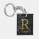Gold coloured faux metallic font style letter RX set on black marble with white veining. Customise with your own name or message in pale golden yellow "double font" or delete the name for just the letter. The letter has been placed in the centre of the image.