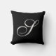 Personalised monogram pillow with a classic script letter S on a Black background. Made in the USA from machine washable cotton or polyester. Perfect for Sabrina, Samantha, Sara, Sarah, Savannah, Selena, Shannon, Shelby, Sierra, Stephanie, Sydney or anyone else who's name begins with an initial S.