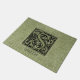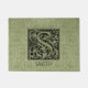 Charming decorative letter S initial monogram calligraphy style typography first letter in black over vintage sage green book lining with off white Ginkgo biloba leaves.