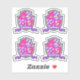 Knights style shield monogram letter S graphic art stickers in shades of pink, purple, white and grey. Personalise with your own name, currently reads Susanna. Ideal for personalising your belongings if your surname or first name begins with the letter S. Unique drawing and graphic art and design by Sarah Trett for www.mylittleeden.com