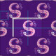 Pretty whimsical initial S drawing converted to graphic letter art in shades of purple and pink on a dark purple background. Background colour can be changed to your own colour choice if required. Personalised with your own initial this fabric reads S, ideal for customised sewing projects. Other letters available. © Original drawing and design by Sarah Trett. www.sarahtrett.com for www.mylittleeden.com