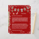 Personalised letter from Santa Claus on a red background, with a cute unicorn pulling Santa's sleigh and light modern sprinkle of white and silver snowflakes. The sleigh carries a jolly figure of Santa along with many wrapped gifts. The unicorn is white with red and golden mane and tail, and the background of the letter is red. At the top there's a string with gingerbread men and houses and two pairs of candy canes tied with a green and white ribbon. On the back there's a pattern with reindeer, Christmas trees, baubles, snowflakes, Santa, snowmen, gingerbread men, stockings, and gift boxes, and the same frame of snowflakes that appears on the front.