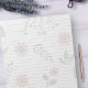 Standard Letter Size Pages - 8.5" X 11" with Black Wide Ruled Lines on Each Page for Easy Writing - One Sided Notebook Paper with a Modern Minimalistic Pink and Green Floral Background.