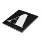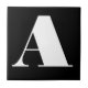 Ceramic letter tiles. Upper or lower case letter tiles. You customise with the letter or letters you need for your ceramic tile or mosaic sign. Letter tile for weather proof signs, house numbers. White on black background.