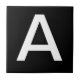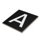 Ceramic letter tiles. Upper or lower case letter tiles. You customise with the letter or letters you need for your ceramic tile or mosaic sign. Letter tile for weather proof signs, house numbers. White on black background.