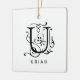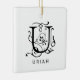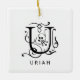 Letter U Elegant Monogram Christmas Ornament. Elegant, decorative monogram letter U in a trendy black + white colour palette, though all colours are editable! Personalise the back of the ornament with a photo. All letters A to Z are in the layered files of this design. Click "Personalise this template" and select "Edit using design tool." Click the eye icon to turn on/off layers if you wish to choose another monogram letter or create an ornament using two monogram letters. © Kimbellished, LLC
