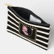 Letter U Floral Monogram Black White Gold Stripes Accessory Pouch