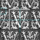 This initial V is part of a complete series of upper case William Morris inspired typography initials. The black and white lettering is highly decorative, styled after the fancy typography of the middle ages. Cute and trendy, this is a vintage chic monogram V - letter V- swirly V . Customise this vintage monogram by changing the background colour; just choose "edit design", and edit background colour. There is a complete alphabet of these letters. If you need a different letter, please visit the antiqueart store.