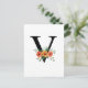Floral black letter V card.