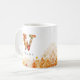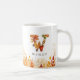 Elegant watercolor leaves frame the bottom of this mug while the letter W is a collage of festive fall element of red orange and yellow leaves, Personalise with a name to make it uniquely yours.
