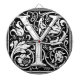 This initial Y is part of a complete series of upper case William Morris inspired typography initials. The black and white lettering is highly decorative, styled after the fancy typography of the middle ages. Cute and trendy, this is a vintage chic monogram Y - letter Y- swirly Y . Customise this vintage monogram by changing the background colour; just choose "edit design", and edit background colour. There is a complete alphabet of these letters. If you need a different letter, please visit the antiqueart store.