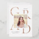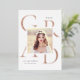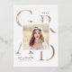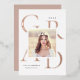 Customise this chic graduation announcement with a square photo overlaid on the word "GRAD" in rose gold foil, along with your name, school, and graduation year. Add an additional photo and a personal message to the back.