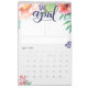 This feminine watercolor calendar features a 12-page monthly calendar (or 24 if you select that option) you can customise the text and also the style of the calendar grid beneath, it also includes a section to organise tasks or goals for the month, a note area and also a designated area for a quote to inspire you during the month.. Each page features a lovely lettered piece with the month and watercolor flowers and greenery. You can personalise the front cover with the year and your custom text as well as the back to make this beautiful 2019 calendar your own.