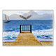 art painting of an Ocean with mountains and sailboats with and eagle flying by.A walk path where one can stand watch,dream wish and let go of worries.