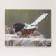 Leucistic Spotted Towhee Sparrow Songbird on Stump Jigsaw Puzzle