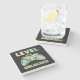 The coasters are gorgeous, a quality feel and heavy weight. They look like a precious archeological find. A rustic stone juxtaposed with a modern floral black and white print. I like the way the print goes slightly imperfect on the cut stone edges giving them a kind-of natural beauty.