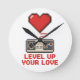 Level Up Your Love, Retro Pixel Gaming Design Round Clock