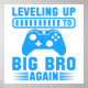 Levelling Up To Big Bro Again - Blue video game controller design for boys who are being a big brother not just once but 2 or more times! Great for new baby reveal gift for the big brother(s)